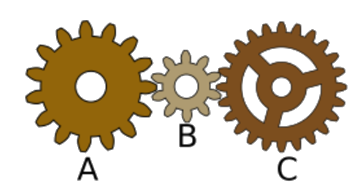 Lorsque l'engrenage A fait 8 tours, combien de tours fait l'engrenage C ?